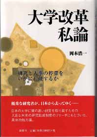 確かにここ数年来の大学改革では「教育の重視」が一貫した流れとなっています。しかし、今回紹介する本では「研究の重視」こそが日本の大学を再生させる処方箋であると論じています。以前に、井口和基氏の『三セクター分立の概念』(近代文芸社)をDOHCで紹介しましたが、この本はこれに優るとも劣らない大学改革の本質をついた好著だと思います。私はフォーラムの参加の直前にこの本を読み、著者の主張に感銘を受けました。そこで、学長にも1冊差し上げてきました。学生をはじめ、多くの大学関係者にもぜひ読んでいただきたいと思います。 (守 一雄)