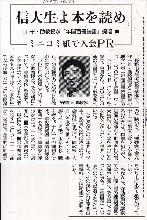 読売新聞(長野版)1987.10.13掲載